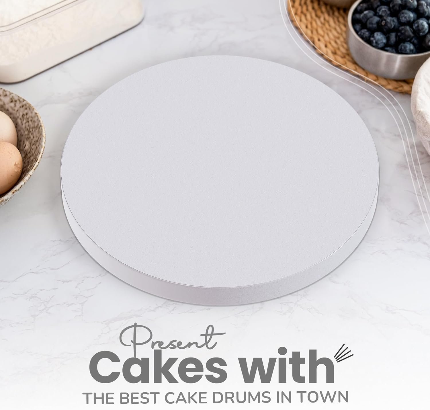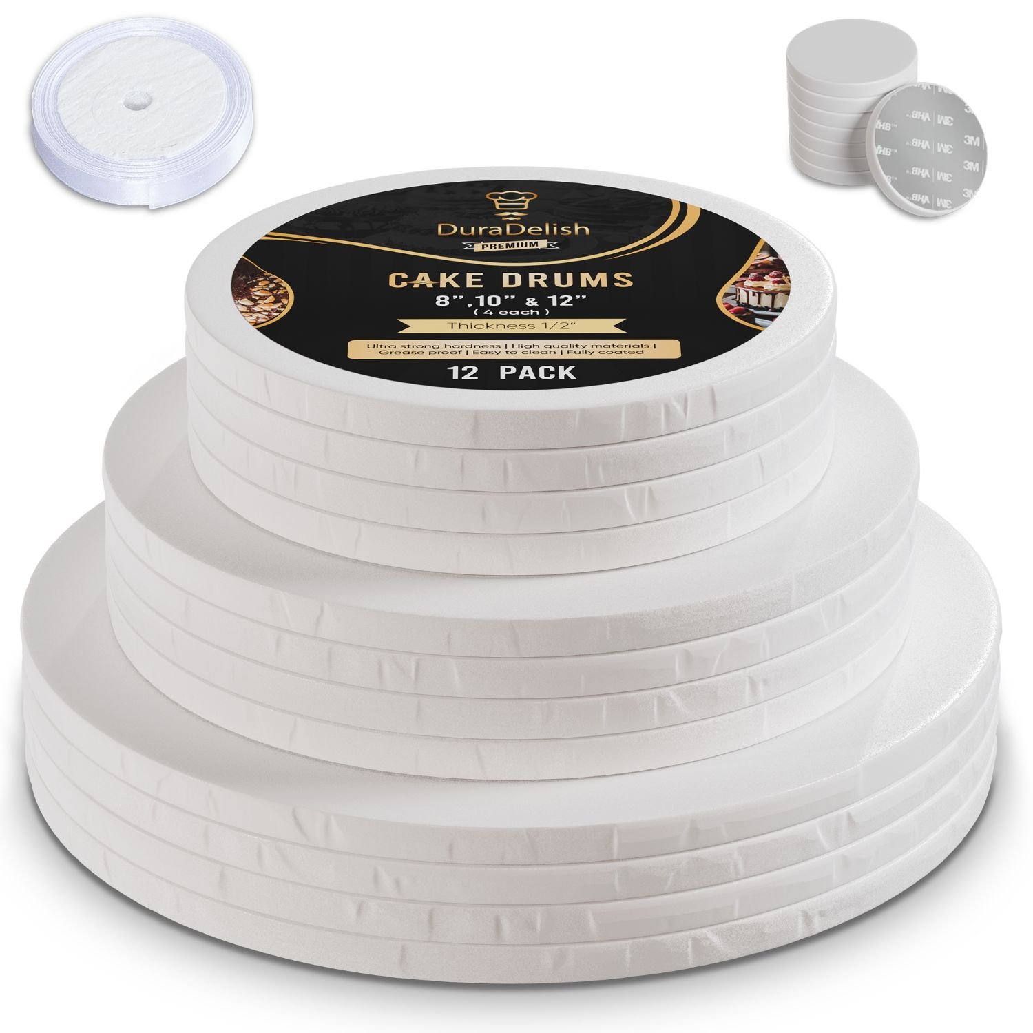 - Cake Drums 8,10,12 inch: Elevate your cake presentations with our premium 8-inch round cake drums. Made from robust corrugated cardboard and 1/2-inch thick, these boards provide exceptional stability for multi-layer cakes. Featuring a grease-resistant, smooth white finish, they enhance the elegance of your creations, making them ideal for weddings, birthdays and special occasions. Durable and versatile, they are perfect for showcasing cakes, pastries, and more, while ensuring easy cleanup.